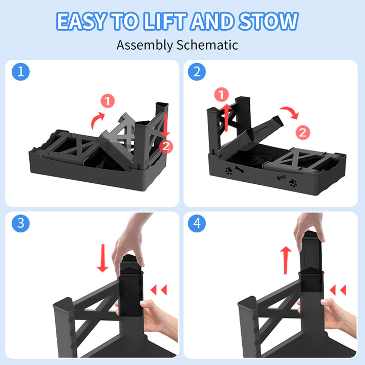 Adjustable Height: Designed with 5 adjustable height settings, the feeder ensures proper posture and comfort, whether your pet is a small kitten or a large dog. Perfect for pets of all ages and sizes, it helps reduce strain on their neck and joints during mealtime.